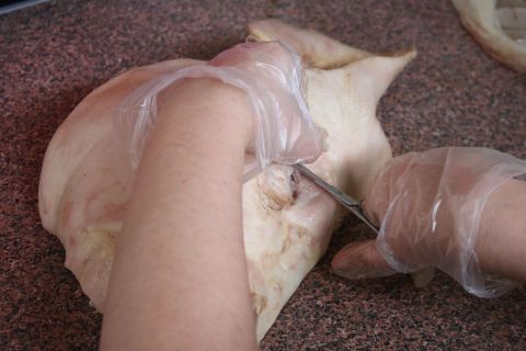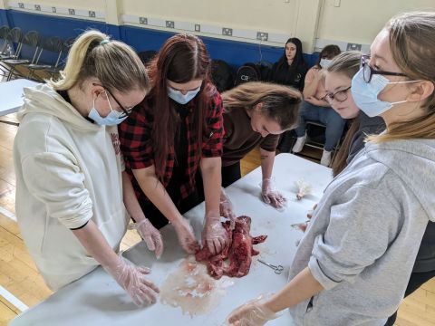 This part of the process saw a few of our students shy away from the gore on the tables as they were getting to grips with further internal organs. Methodically dissecting the internal cavities and removing the organs, our students dissected the trachea, lungs and sectioned the heart and major blood vessels for closer inspection.